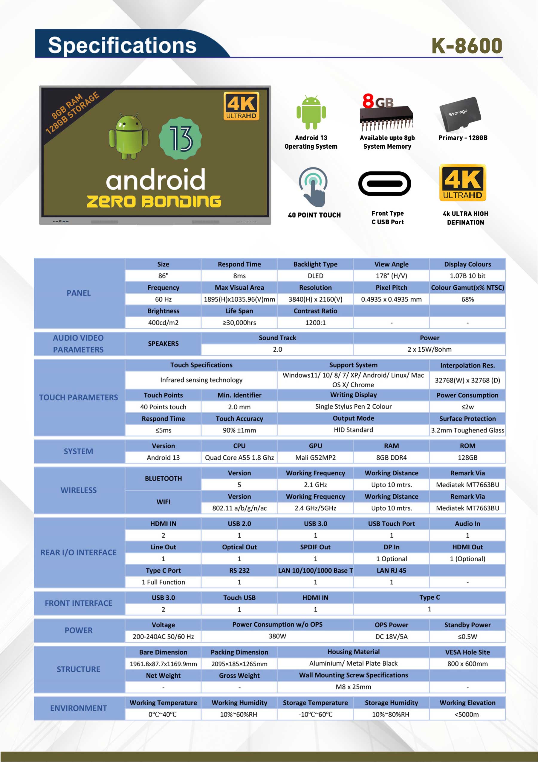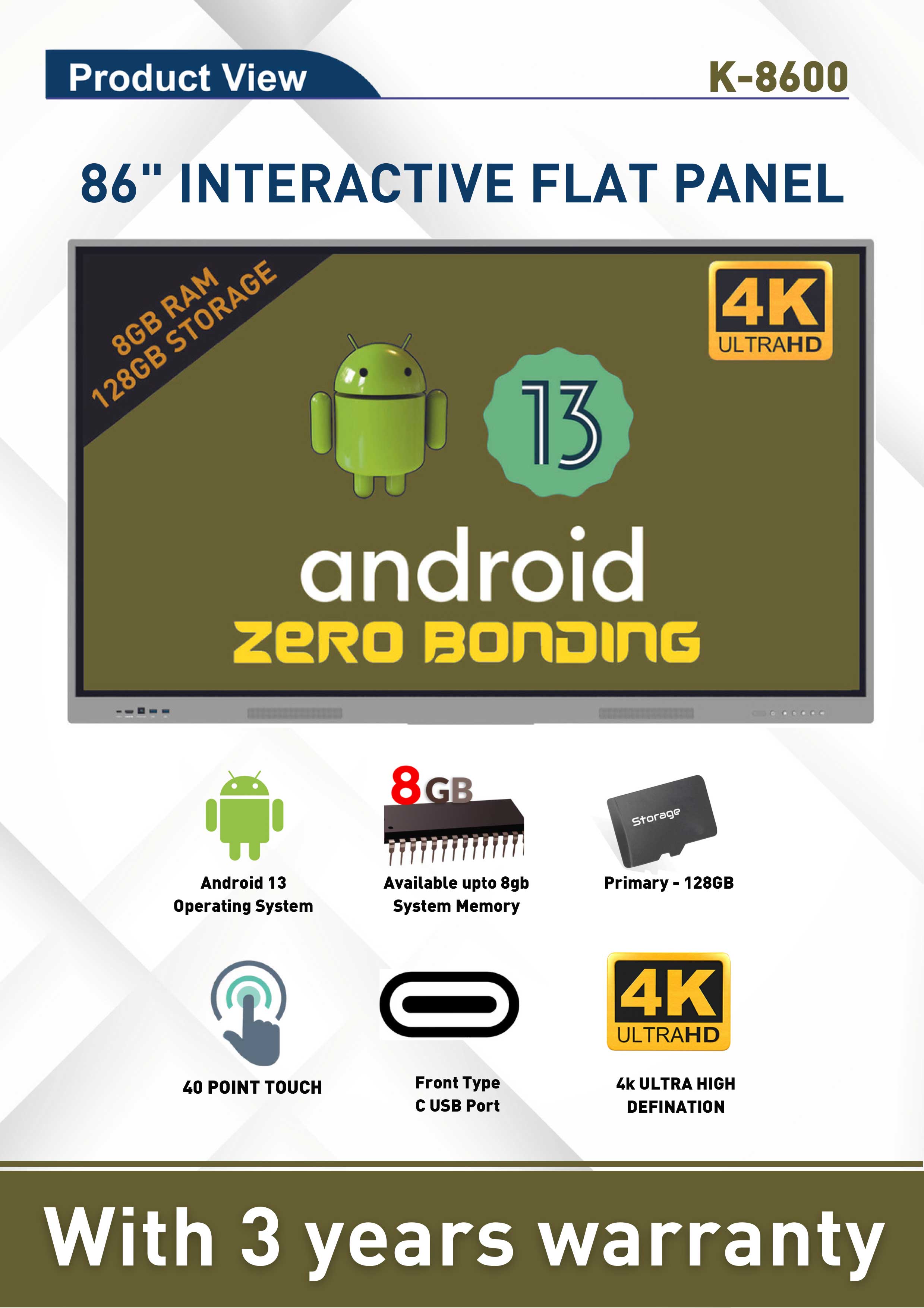K-8600 75 inches 8GB Memory + 128GB Storage